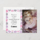 Cartões de agradecimentos de festa de aniversário, bonito, de menina, com flores rosa, roxas e cinzas sobre fundo branco. Este cartão é completamente personalizável, por isso adicione a sua fotografia e coloque o texto nos espaços fornecidos.