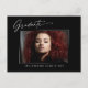 Cartões postais de anúncio de fotos modernos e elegantes, com design elementos do texto moderno com roteiro de tinta de caligrafia. A foto do formando na parte frontal da placa é realçada com uma delicada e minimalista placa de gradiente. A parte traseira do cartão oferece espaços de texto personalizados para informações sobre a sua graduação ou pode ser apagada se você quiser enviar uma mensagem. Preto e branco ou personalize facilmente o fundo para corresponder à cor primária da sua escola ou a qualquer cor da sua escolha. Perfeito para o segundo grau, universitário e estudante de formando universitário.
