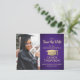 Compartilhe as notícias alegres de uma próxima festa de formatura com roxo fotográfico personalizado e ouro, salve os convites para cartão postal de data. A imagem e o texto deste modelo são simples de personalizar e as cores podem ser alteradas com a ferramenta Zazzle design. Personalize-o com o nome do formando, o ano da classe e outros detalhes do lançamento da sua escolha. O design apresenta um boné falso de conselho de morteiro de folha de alumínio, uma caligrafia elegante moderna, uma tipografia de vintage clássica e uma foto favorita, como uma fotografia de mais velho ou uma imagem da cerimônia de inicio. Observe que o ouro é impresso a cor, não a folha metálica. Estes cartões de na moda são uma maneira elegante de compartilhar uma celebração especial de dia com a família e os amigos. Parabéns ao formando!
