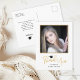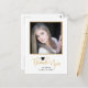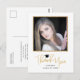 Um simples cartão postal de agradecimento de formatura com uma foto quadrada acentuada com uma borda de brilho dourado falso. O design oferece texto em estilo manuscrito dourado. O verso oferece texto personalizado para sua própria mensagem de agradecimento pessoal.