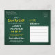 Compartilhe as notícias alegres de uma próxima festa de formatura com fotos verdes e douradas personalizadas, salve os convites para cartões postais de data. A imagem e o texto deste modelo são simples de personalizar e as cores podem ser alteradas com a ferramenta Zazzle design. Personalize-o com o nome do formando, o ano da classe e outros detalhes do lançamento da sua escolha. O design apresenta um boné de conselho de argamassa, uma caligrafia moderna elegante, uma tipografia de vintage clássica e uma foto favorita, como uma fotografia de mais velho ou uma imagem da cerimônia de inauguração. Observe que o ouro é amarelo impresso, não é folha metálica. Estes cartões de na moda são uma maneira elegante de compartilhar uma celebração especial de dia com a família e os amigos. Parabéns ao formando!