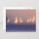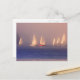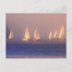 Foto de sete veleiros navegando na névoa no pôr do sol. Bonitos tons roxos e a água azul do oceano em um dia sombrio destacam esta bela foto do Oceano Pacífico. Você pode personalizar esta imagem de veleiro com seu próprio texto e fazer com que ela seja impressa em muitos produtos diferentes.
