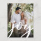 O cartão com fotos de feriado simples e elegante apresenta sua foto favorita e ''joy'' sobreposta em um roteiro branco manuscrito. Personalize com seus nomes ou nome de família e o ano e adicione sua mensagem pessoal exclusiva no verso.