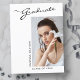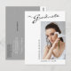 Este cartão-postal de anúncio de graduação elegante moderno apresenta elementos design do texto moderno fundidos com um roteiro elegante de caligrafia. A foto horizontal dos formandos é colocada de forma artística na frente do cartão, enquanto a parte traseira do cartão oferece espaços de texto personalizados para informações sobre a graduação e a viagem futura. Os fundos são brancos na frente e cinzas prateadas na parte traseira ou os personalizam facilmente para as cores de sua escolha. Para ver mais itens como este, visite minha loja aqui em "www.Zazzle.com/LakeViewCardCo". Obrigados