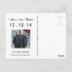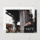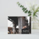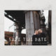 Retrospectivo de vintage "Salvar a Data" na frente com foto de sangria de cheio, detalhes no verso. Foto quadrada e fronteira de pergunta. Foto cortesia de Leeds Wedding Photoógrafo, John Hope. Visite-o em http://www.johnhopephotography.com