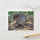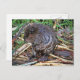 Foto de um castor bebê selvagem encharcado e ainda com olhos azuis. O bebê do castor bonitinho está se aliciando enquanto está sentado em um pântano com verduras ao seu redor. Vocês podem ver a cauda e os pés de teias. Se você gosta de fotos bonitinhas de animais, esta foto de castor bebê é para você!