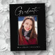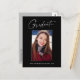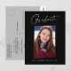 Cartões postais de anúncio de graduação "Foto" limpos, modernos e elegantes, com design elementos do texto moderno com um único roteiro de tinta de caligrafia. A foto do formando na frente da placa é realçada com uma delicada e minimalista placa de gradiente. A parte traseira do cartão oferece espaços de texto personalizados para informações sobre a sua graduação ou pode ser apagada se você quiser enviar uma mensagem. Preto e branco ou personalize facilmente o fundo para corresponder à cor primária da sua escola ou a qualquer cor da sua escolha. Perfeito para mais velho de segundos graus, universitários e universitários.