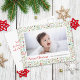 Este belo cartão-postal apresenta um padrão floral de Natal verde-claro, vermelho, azul e cinza. Script e tipografia clássica são usados com uma foto grande. A parte traseira do cartão postal pode ser personalizada ou excluir o texto de uma mensagem manuscrita.