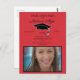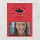 Cartão postal de convite para festa de formatura vermelha com um boné de formatura preto.