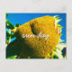 "Dia do Sol." Um girassol amarelo brilhante balançando em uma brisa leve grita quente, dias de verão. Sonho de dias ensolarados e a atmosfera pacífica de um jardim de verão sempre que você envia este cartão postal fotográfico impressionante. Faz um presente de excelente para alguém especial! Você pode personalizar facilmente este cartão postal. Por favor, me mande mensagens com quaisquer perguntas ou solicitações.