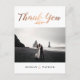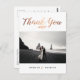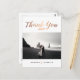 modelo de na moda do obrigado do seu cartão-postal com uma foto na frente com o texto "Obrigado" em uma letra moderna em ouro falso brilhante. Há uma pequena ilustração foliar no texto em ouro falso também. Obrigado personalizado que você envia a mensagem e o endereço na parte traseira do cartão. Design elegante e moderno.