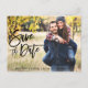 Script de Pincel Moderno Salve O Cartão-Postal De Foto Do Casal De Noivado De Data