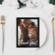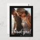 Simples obrigado de fotos de casamento em preto e branco que você coloca no cartão-postal apresenta uma foto e um obrigado bonito, seu roteiro de caligrafia em branco, com um fundo preto. O verso inclui uma mensagem pessoal com o endereço de retorno.