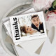 Este é um cartões de agradecimentos de casamento moderno impresso em um postal. O design usa uma fonte ousada no estilo de tipografia junto com uma foto simples minimalista para uma estética moderna e divertida. O verso inclui um obrigado que você pode personalizar. Altere facilmente as cores, o texto e as fotos, conforme necessário. Entre em contato com o designer para obter informações relacionadas a este design.