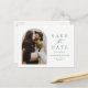 A Foto Simples Moderna Salva a Data Postcard mostra um design elegante com um toque pessoal, com sua foto favorita emparelhada com caligrafia verde simples e chic. Este cartão-postal minimalista inspirado em vassoura é perfeito para casais que desejam fazer uma declaração, e é facilmente editável — sintam-se livres para me contactar se precisarem de assistência!