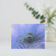 Fotografia de uma pena de pavão contra um céu de nuvens sábias.