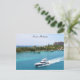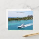 Fotografia de alta definição da área a caminho do porto de Nassau Bahamas mostrando o Resort Atlantis à direita ao fundo. Belo barco motorizado pelos cais. Esta cena mostra as muitas cores azuis e turquesa lindas pelas quais a água das Bahamas é conhecida.