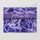 A fotografia de perto captura tiras de papel roxo enrugadas e picadas na capa do cartão postal com a mesma imagem de opacidade reduzida no verso. Personalize o texto do modelo para a sua ocasião.