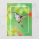 Um beija-flor fotografado no ar do médio com flores de focagem suave como fundo.