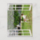 Imagens que olham através de uma janela são dois cães de raposa branca e castanha que exploram o jardim.