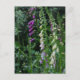 Cartão-postal com fotografia de flores de foxgaba roxa e branca