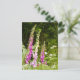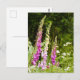 Cartão-postal com fotografia de flores cor-de-rosa e roxas