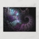 Este design de arte abstrata fractal apresenta um padrão de roxo, azul, violeta e rosa espiralando e brilhando quase com um efeito neon.