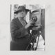 Foto antiga do fotógrafo Frances Benjamin Johnston ajustando lentes de uma grande câmera tripé em frente ao Arts Club, 2017 Eye Street, Washington, D.C., 1936.