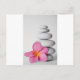 Uma flor de frangipani rosa e uma pilha branca de seixos para uma bela e pacífica imagem comum.