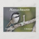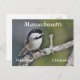 Uma galinha adorável, a saltar num galho, com o texto que diz: "Frango de aves do Estado de Massachusetts". Sinta-se livre para alterar ou remover texto se quiser.