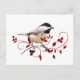 Pessoas que amam Chickadees sabem que são um pássaro pequeno amigável. Este bonito Chickadee em algumas folhas vermelhas fará um presente excelente para um amante de pássaros.