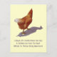Um ditado humorístico acompanha esta ilustração em pastel a óleo de um frango caminhando confiantemente para frente. O ditado zomba da piada proverbial sobre um "frango atravessar a estrada".