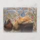 Este cartão postal apresenta galinhas revezando-se no trono do vaso de flores!