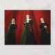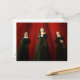 Esse design esquisito apresenta uma imagem de freiras cerâmicas sobre fundo vermelho.