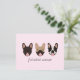 Ilustração de três cachorros de Bulldog franceses de diferentes cores.