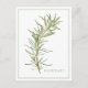 Envie uma mensagem ou crie um convite com este cartão postal FRESH ROSEMARY. O design é o meu desenho de lápis original colorido de rosmaninho fresco. * Altere (ou remova) facilmente "ROSEMARY" com "Personalize este modelo". Altere a fonte, o tamanho da fonte e/ou a cor com Editar Design e Editar Texto. Adicione uma mensagem no verso com Editar Design e Adicionar Texto. (Combine seu texto ao design frontal com a fonte 'Industrial Roman'.) * Outras placas e produtos correspondentes estão disponíveis na categoria FRESH HERBS do meu compro. ** Se você quiser transferir este design para outro tipo de produto, forma ou tamanho, verifique primeiro meu compro para ver se já fiz um, porque eu vou ter que mexer com ele para fazer o ajustado design certo e ele vai salvar o seu incômodo. Às vezes designs transferem bem, às vezes não. Apenas para sua informação. Se precisar de ajuda ou tiver uma pergunta, por favor, envie-me uma mensagem.