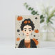 Envie saudações assustadoramente fofas de Halloween com este cartão postal encantador com Frida Kahlo cercada por abóboras caprichosas. Misturando detalhes sazonais divertidos com estilo artístico, é perfeito para compartilhar mensagens festivas, convites para festas ou apenas um toque de diversão no Halloween. Ousado, criativo e único, este cartão postal adiciona um toque estiloso e memorável à sua correspondência da temporada assustadora.