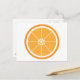 Um simples mas fofo design de uma fatia de fruta laranja feita em branco e laranja num cartão postal.