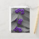 Adicione sua própria mensagem pessoal aos seus amigos e familiares no cartão postal em branco Frutas Roxas em Folhas Preto e Branco. Este cartão postal natural apresenta uma fotografia de natureza de cores seletivas macro aproximada de frutas roxas brilhantes em folhas de plantas pretas e brancas.