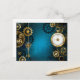 Turquesa, texturizada, fundo steampunk com latão e engrenagens douradas, chave prateada e relógio. Estilo Steampunk.