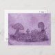 Uma coleção de diferentes fungos desenhados em tinta roxa.