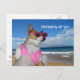 Este lindo córrego de biquíni rosa está tomando sol nas férias de praia de seu cachorro. Um cartão muito engraçado para alguém que você está desaparecendo que ama cachorros bonito. Nada como ver um Pembroke Welsh Corgi vestido com roupas de bobo com óculos de sol. Personalize com seu próprio texto, pensando em você, gostaria de estar aqui, sinto sua falta...