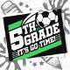 Este 5 de volta para o tema de futebol da escola é perfeito para um professor do 5º ano que adora futebol ou 5 que joga futebol pronto para lançar a 5 no primeiro dia de volta à escola e no último ano! Apresenta '5 Grade - It's Go Time!' de volta à quinta citação da escola com bola de futebol no gráfico de campo de futebol. Excelente para um professor de 5 ou quinta série que adora assistir ou jogar futebol!