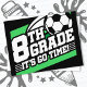 Esta design de futebol do 8º ano é perfeita para uma professora do 8º ano que adora futebol ou estudante do 8º ano que joga futebol pronto para começar a 8ª série no 1º dia de volta à escola e o ano todo! Apresenta o '8º ano - It's Go Time!' de volta à oitava série da escola com bola de futebol no gráfico de campo de futebol. Excelente para um professor da 8ª série ou oitava série que adora assistir ou jogar futebol!