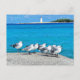 Gaivotas numa praia arenosa em Nassau, Bahamas.
