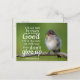 Um cartão-postal inspiracional mostra um adorável pássaro bebê em um galáctico e apresenta a Bíblia Verse Galatianos 6:9 "Não nos cansemos de fazer o bem: porque em tempo oportuno nós colheremos se não desistirmos." _