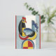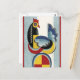 Uma versão abstrato de Art Deco de uma galinha sentada num ovo. Colorido em vermelho, azul e amarelo