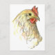 Um cartão de posto divertido decorado com uma galinha doce desenhada em caneta preta e tinta com lápis colorido e sotaque de pássaros no verso. Excelente para aqueles que amam galinhas!