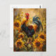 Cartão Postal Galo e Girassóis - Pintura a óleo