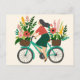Cartão Postal Garota Bonita Andando de Bicicleta com Flores Pers